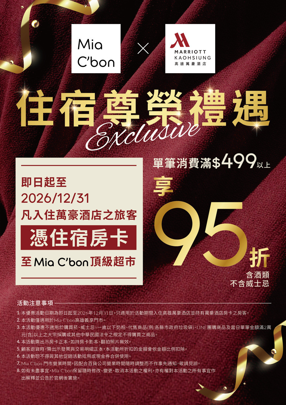 萬豪酒店 住宿尊榮禮遇(1/1-12/31)